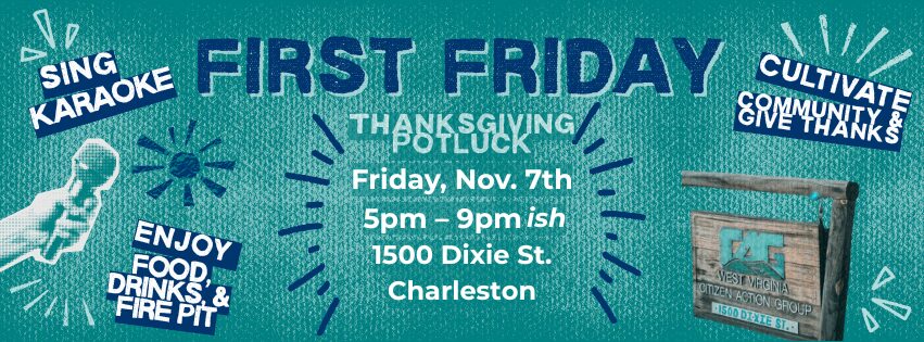 November First Friday PotluckBy CAG / October 21, 2025 Event Details Date: November 7, 2025 5:00 pm – 9:00 pm Venue: WV CAG Office Â