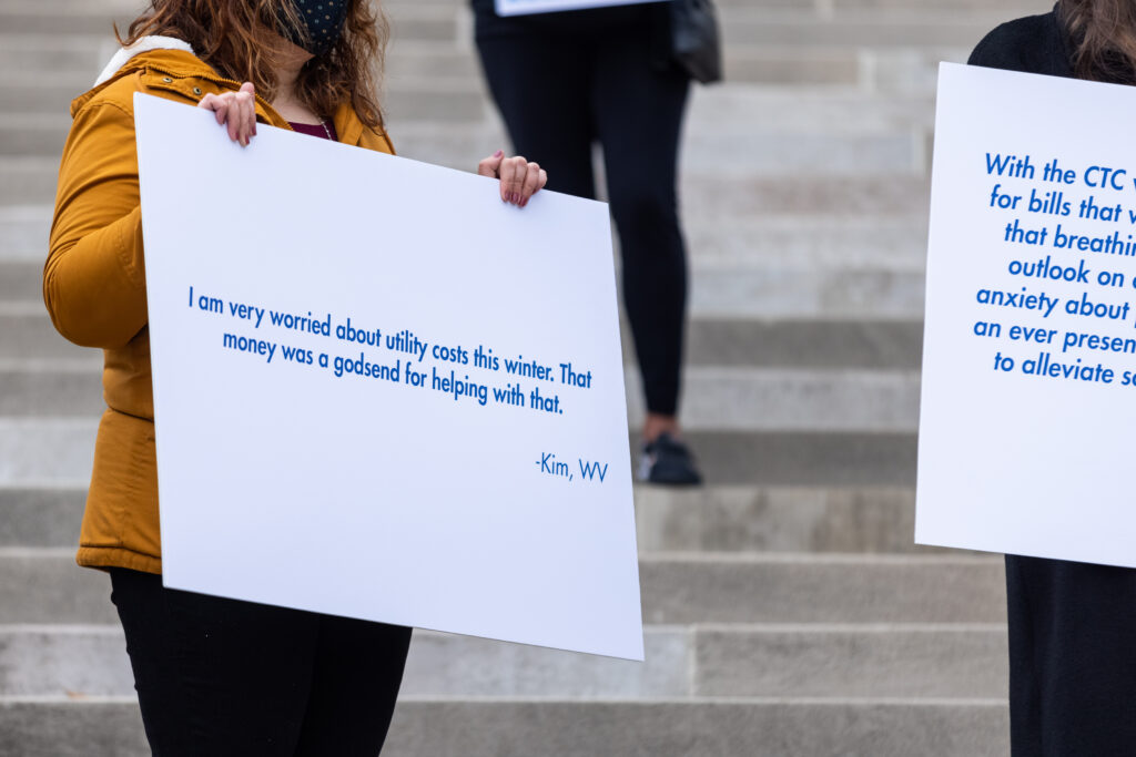 The event marked the day when tens of thousands of families in West Virginia did not receive the monthly CTC dollars into their bank account. Parents who directly benefited from the CTC shared the struggles they anticipate in the months to come.